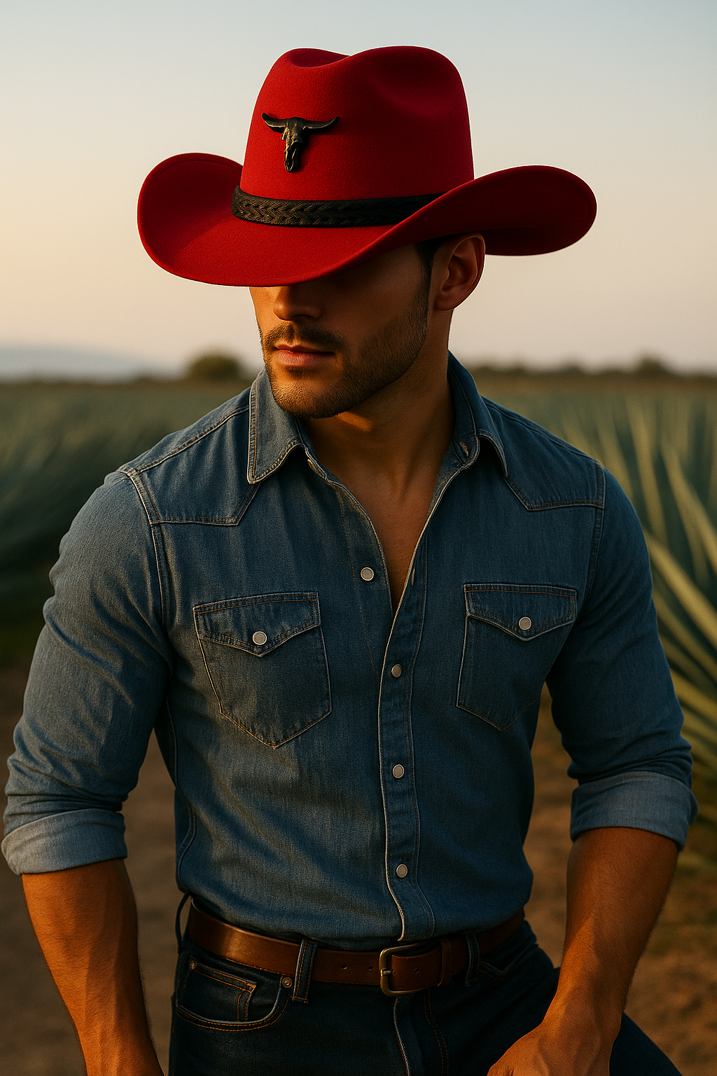 Atrévete a destacar con el sombrero THAURUS WESTERN en color rojo. Su intensa tonalidad y la horma texana Chihuahua se combinan con una textura de gamuza textil elegante, creando una pieza poderosa y sofisticada. El toque final lo da su toquilla trenzada negra y el emblema frontal de la cara de un toro, que le dan carácter sin esfuerzo. Hecho para quienes saben imponer su presencia.